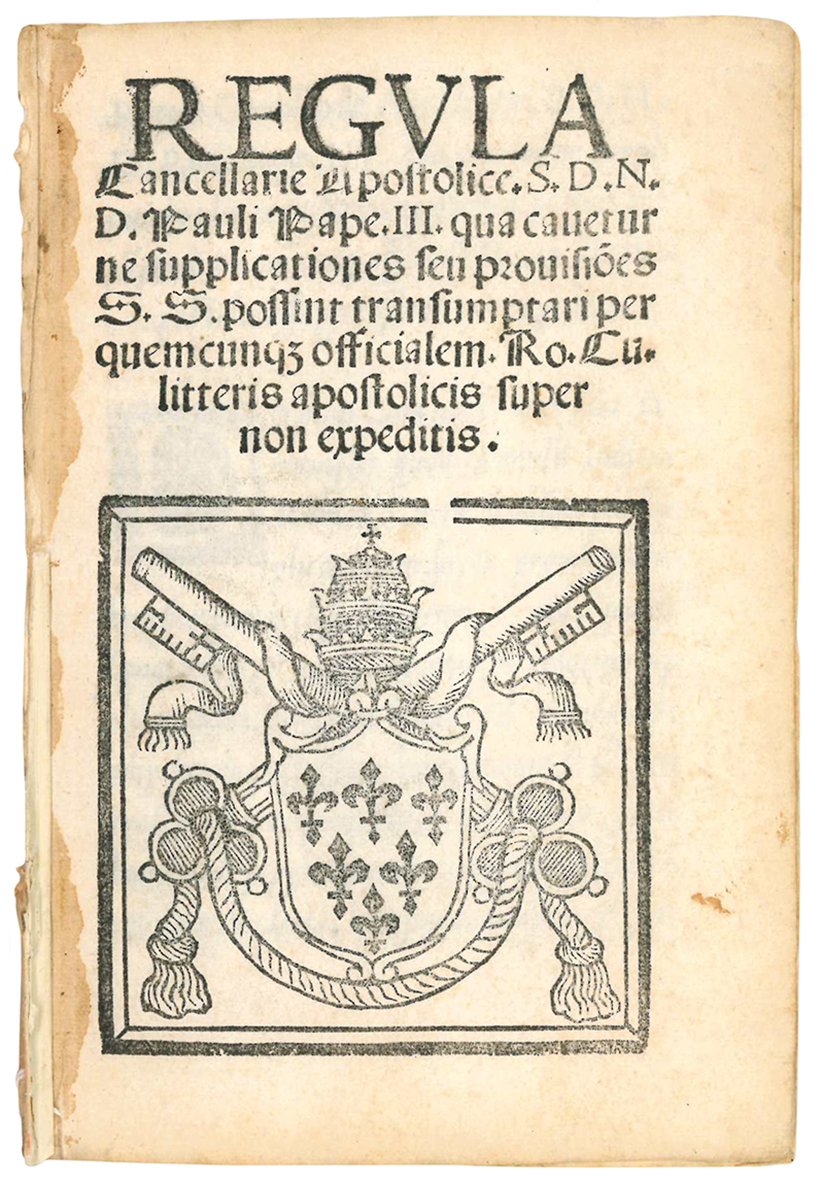 Regvla Cancellarie Apostolice. S.D.N.D. Pauli Pape. III. qua cauetur ne supplicationes seu prouisio[n]es S. S. possint transumptari per quemcunq[ue] officialem. Ro. Cu. litteris apostolicis super non expeditis. Cancelllaria apostolica