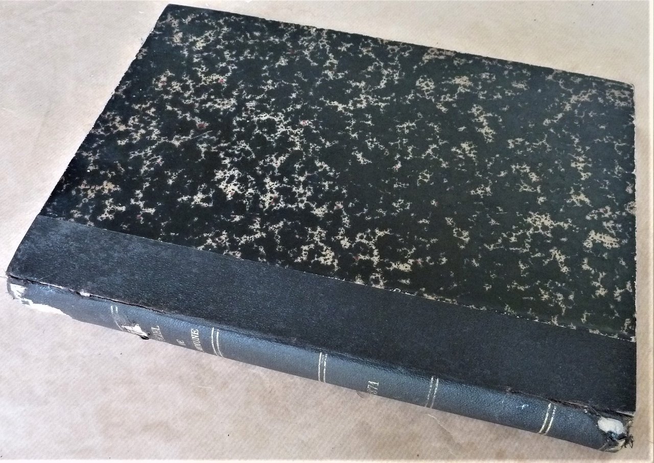 Un volume de format in folio de 656 pp.; reliure de l'éditeur en demi toile chagrinée; titres dorés. Important manque au dos à restaurer. Sinon le corps de l'ouvrage est d'une grande fraîcheur.Voir les photos. On joint la lettre d'un soldat "Versaillais", de la Gare du nord, à sa "Pauline"; elle est datée du 29 mai 1871. Le témoignage est saisissant: "je n'ai vu un pareil massacre. Nos soldats n'ont pas fait de prisonnier; tout homme, femmes ou enfant pris les armes à la main a été passé par les armes. Nous avons frappé de terreur la populace de Paris."; lettre de 2 pages et demi. Cinq photos de l'époque de Paris dévasté deux du Grenier d'abondance; une de la rue Saint Martin; une du Palais des Tuileries ravagé; une de la rue de Rivoli.