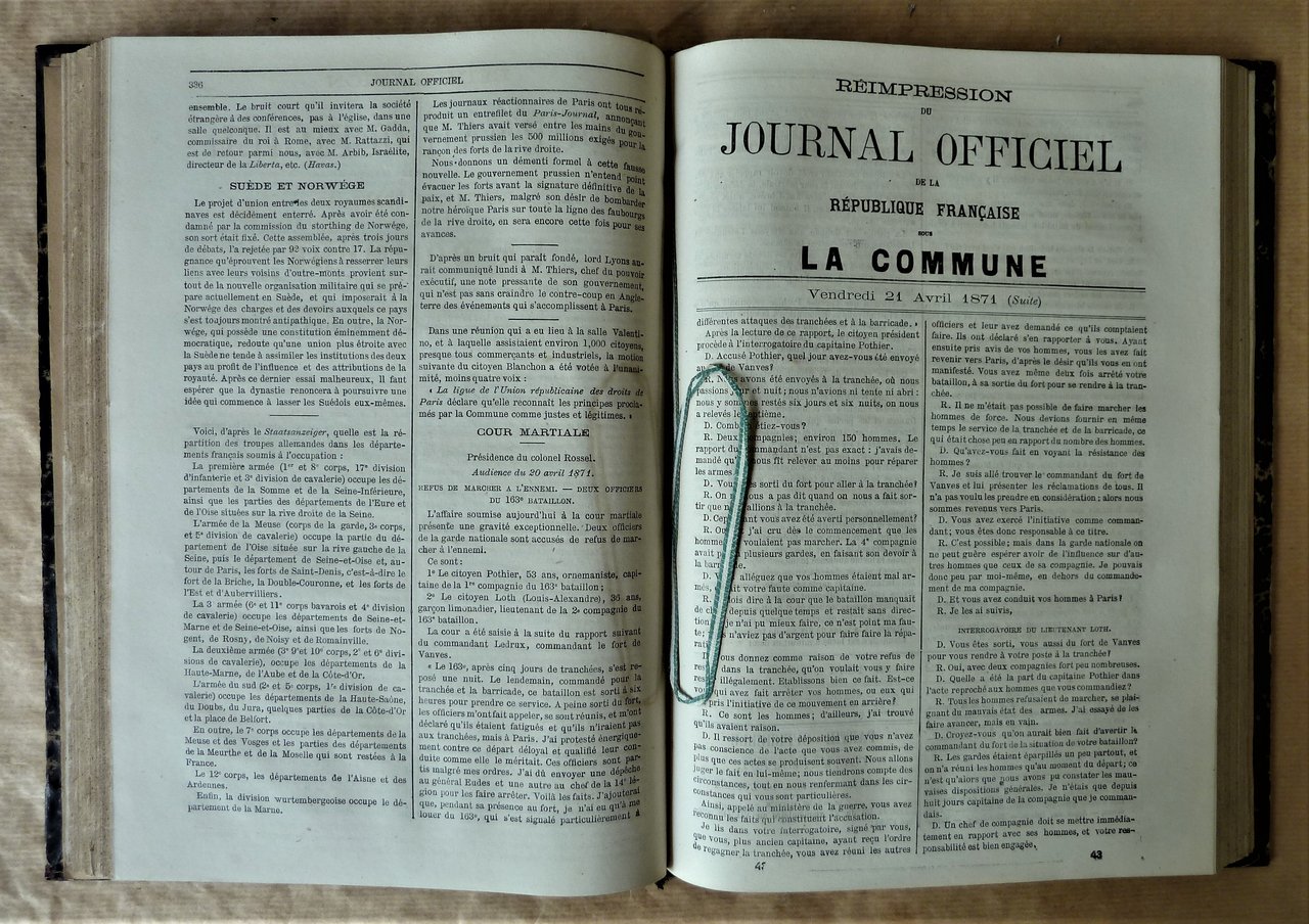 Réimpression du Journal Officiel de La Commune. Du 19 Mars au 24 Mai 1871. Joints, une lettre autographe de soldat; 5 photos de l'époque.