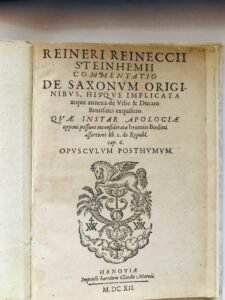 REINERI REINECCII STEINHEMII COMMENTATIO DE SAXONUM ORIGINIBUS, HISQUE IMPLICATA ATQUE ANNEXA DE URBE ET DUCATU BRUNSUICI EXQUISITIO