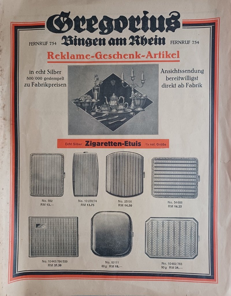 - Wirtschaft, 1913, ab, 30er Jahre, Firmenkataloge, Reklame, Silber, Werbegeschenke, Werbung