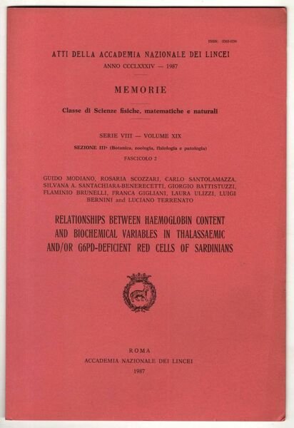 Relationship between haemoglobin content and biochemical variables in thalassaemic and/or G6PD-deficient red cells of sardinians