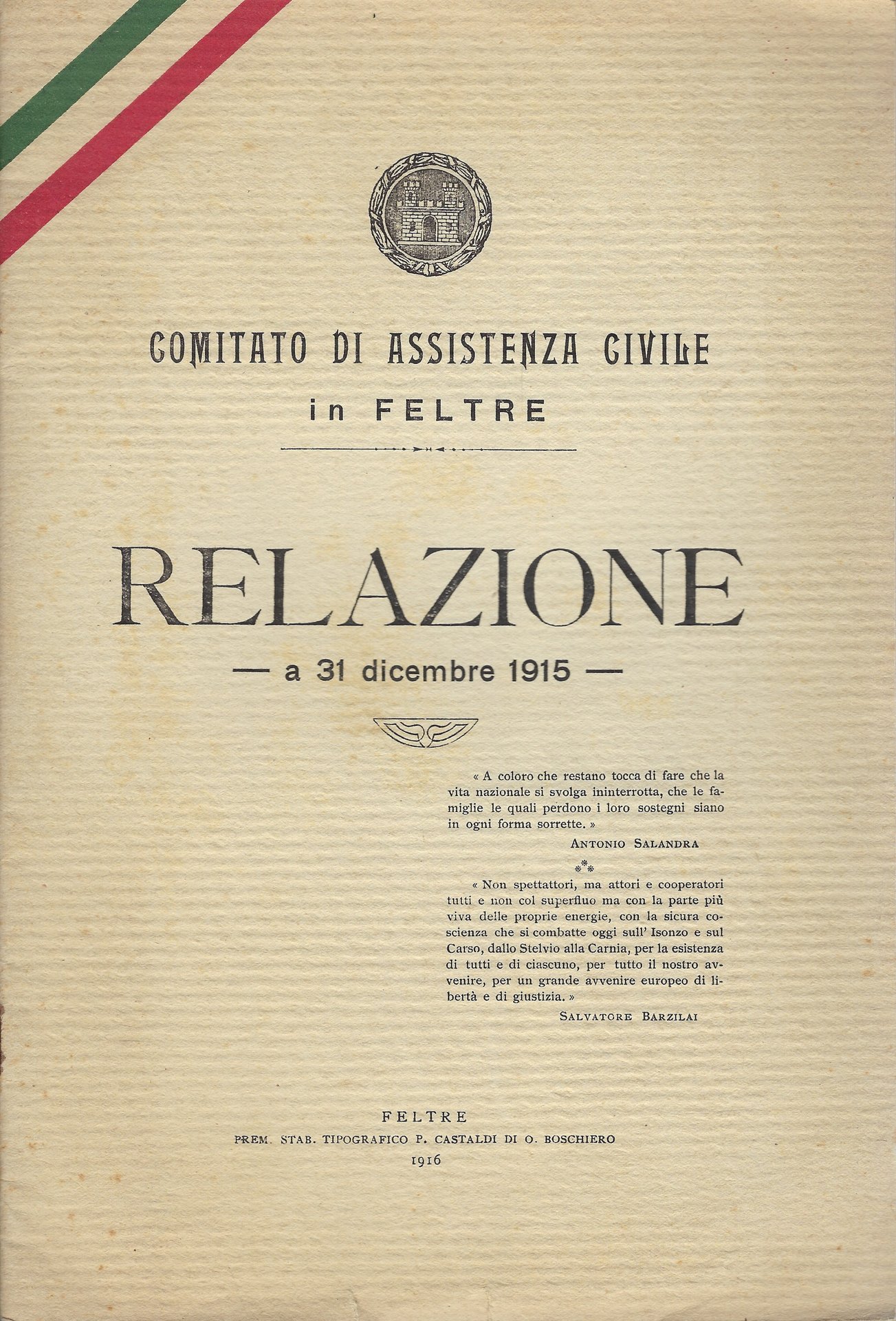 "Relazione a 31 dicembre 1915" Comitato di Assistenza Civile in Feltre