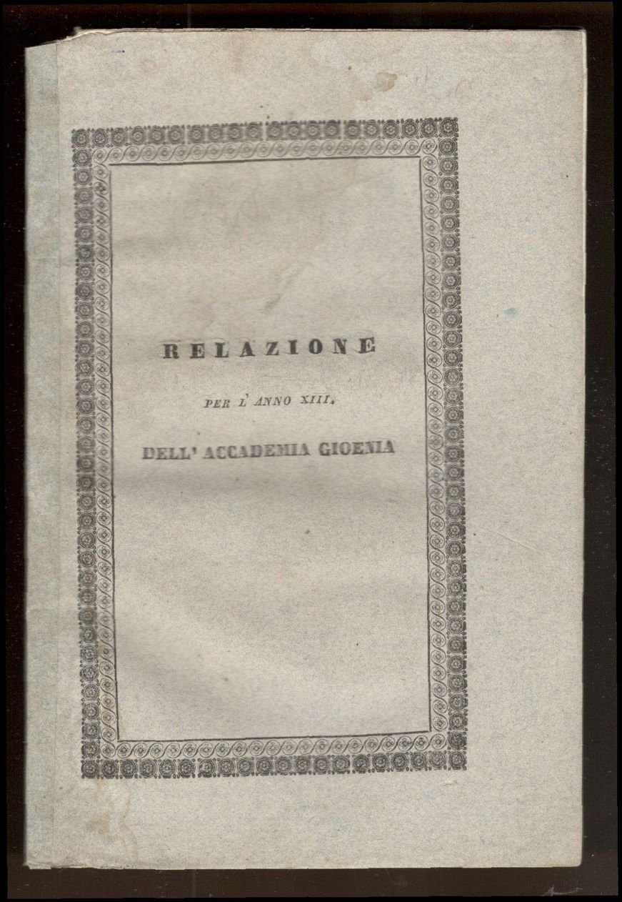 Relazione accademica per l'anno XIII dell'Accademia Gioenia. Letta nella tornata del 30 maggio 1837