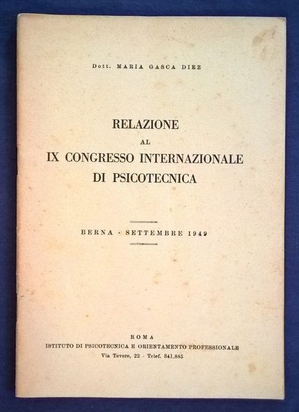 Relazione al IX Congresso Internazionale di Psicotecnica. Berna - Settembre 1949. (Ricerca sulla personalità dei giovani licenziati del Liceo classico).