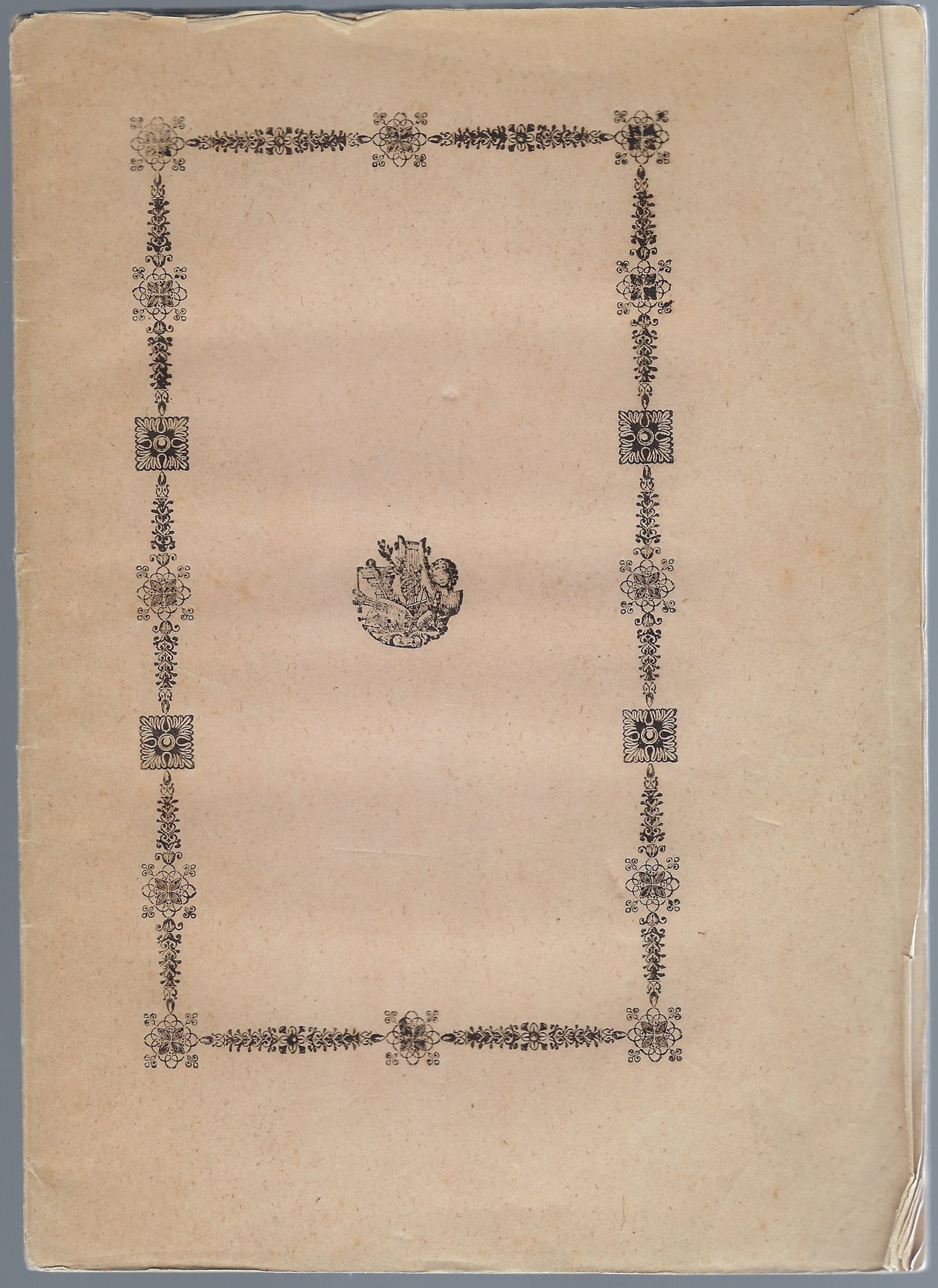Brossura editoriale con fregi tipografici al piatto anteriore ed al 4° di copertina.