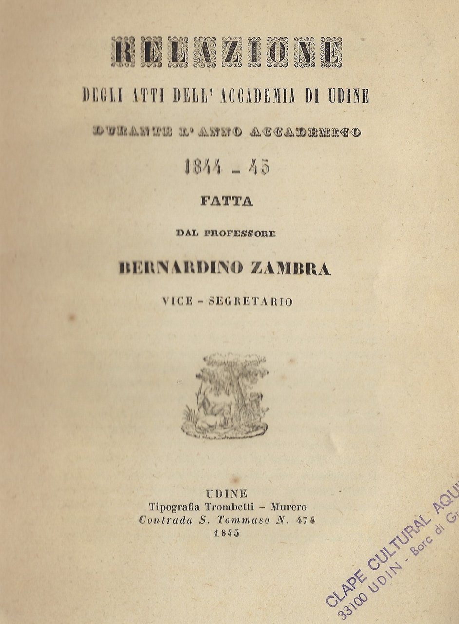 Relazione degli Atti dell'Accademia di Udine durante l'anno accademico 1844-45