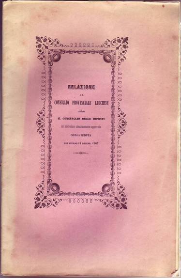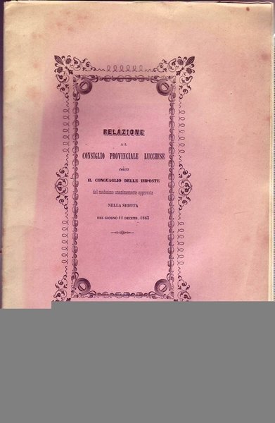 Relazione del Consiglio Provinciale di Lucca sul progetto di conguaglio dellImposta Fondiaria dal medesimo unanimemente approvato nella seduta del giorno 11 Dicembre 1863