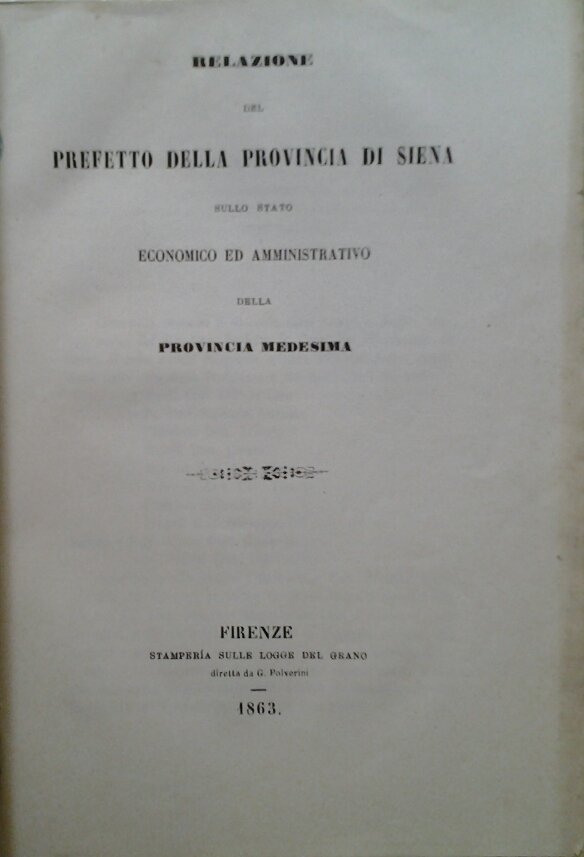 RELAZIONE DEL PREFETTO DELLA PROVINCIA DI SIENA SULLO STATO ECONOMICO ED AMMINISTRATIVO DELLA PROVINCIA MEDESIMA.