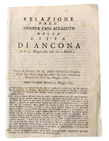 Relazione dell'orribile caso accaduto nella città di Ancona il dì 24. Maggio 1798 alle ore 7. Minuti 5.