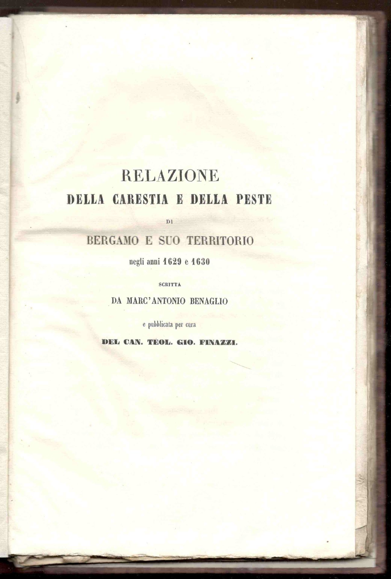 Relazione della carestia e della peste di Bergamo e suo territorio negli anni 1629 e 1630