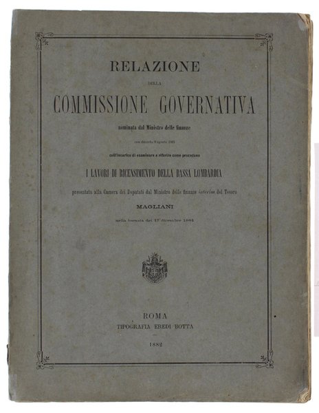 RELAZIONE DELLA COMMISSIONE GOVERNATIVA NOMINATA DAL MINISTRO DELLE FINANZE CON DECRETO 9 AGOSTO 1881