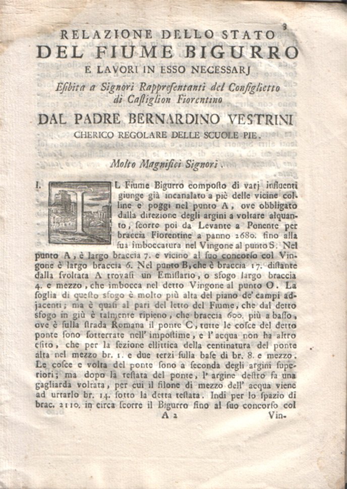 Relazione dello stato del fiume Bigurro e lavori in esso necessarj esibita a Signori Rappresentanti del Consiglietto di Castiglion Fiorentino dal Padre Bernardino Vestrini Cherico Regolare delle Scuole Pie