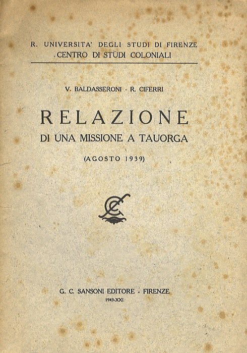 Relazione di una missione a Tauorga (agosto 1939).