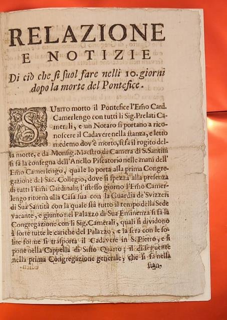 RELAZIONE E NOTIZIE DI CIO’ CHE SI SUOL FARE NELLI 10 GIORNI DOPO LA MORTE DEL PONTEFICE.