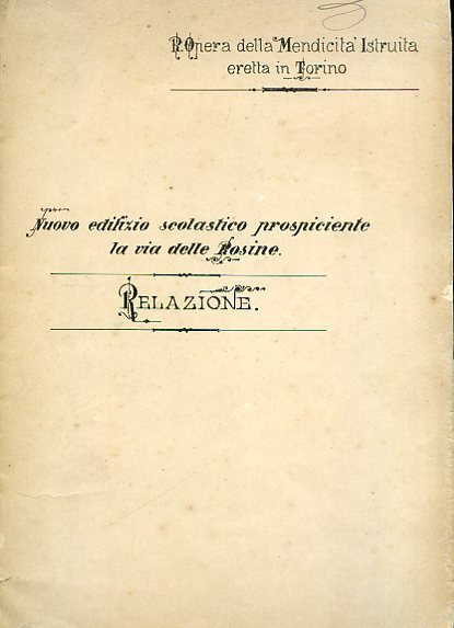 Relazione intorno al nuovo edifizio scolastico testé eretto dalla R. Opera della Mendicità Istruita su terreno proprio e prospiciente la via delle Rosine a levante