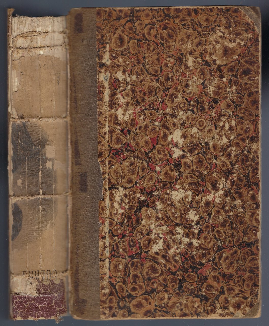 Legatura in cartonato marmorato che presenta segni d'usura e di tempo, abrasioni e margini un po' consunti. Il dorso risulta mancante.