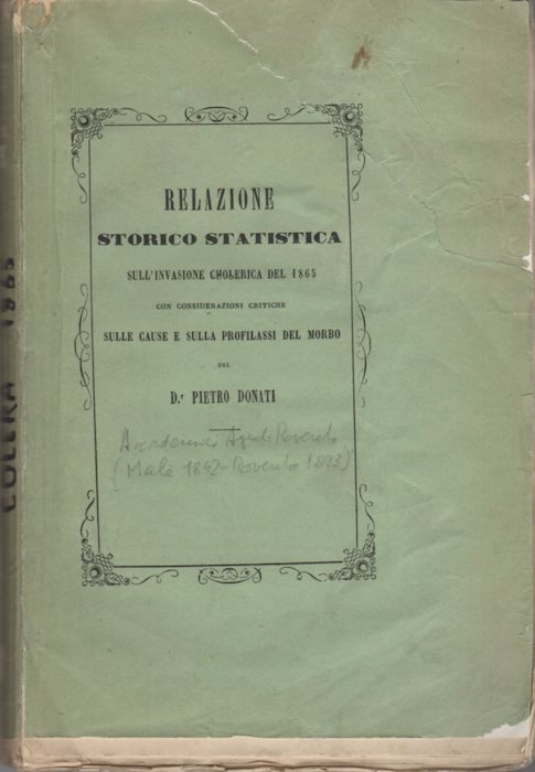 Relazione storico statistica sull'invasione cholerica del 1865: con considerazioni critiche sulle cause e sulla profilassi del morbo.