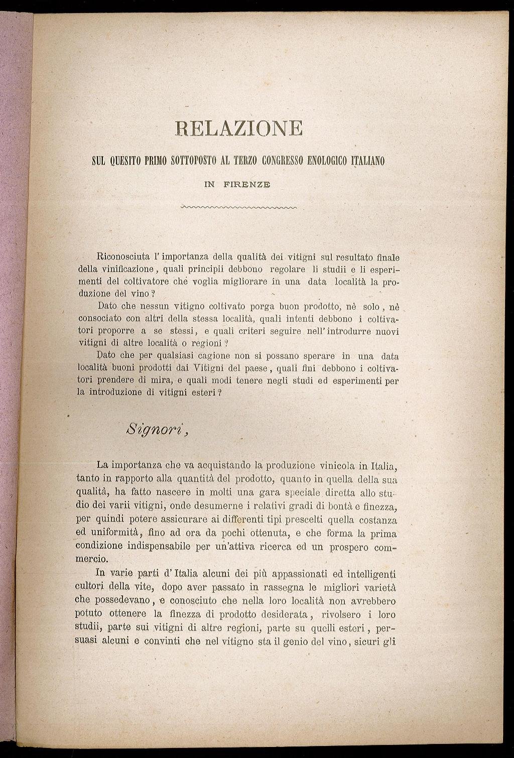Relazione sul quesito primo sottoposto al terzo congresso enologico italiano in Firenze