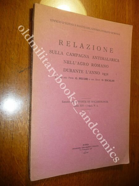 RELAZIONE SULLA CAMPAGNA ANTIMALARICA NELL'AGRO ROMANO DURANTE L'ANNO 1932