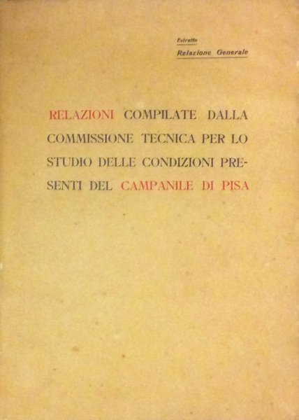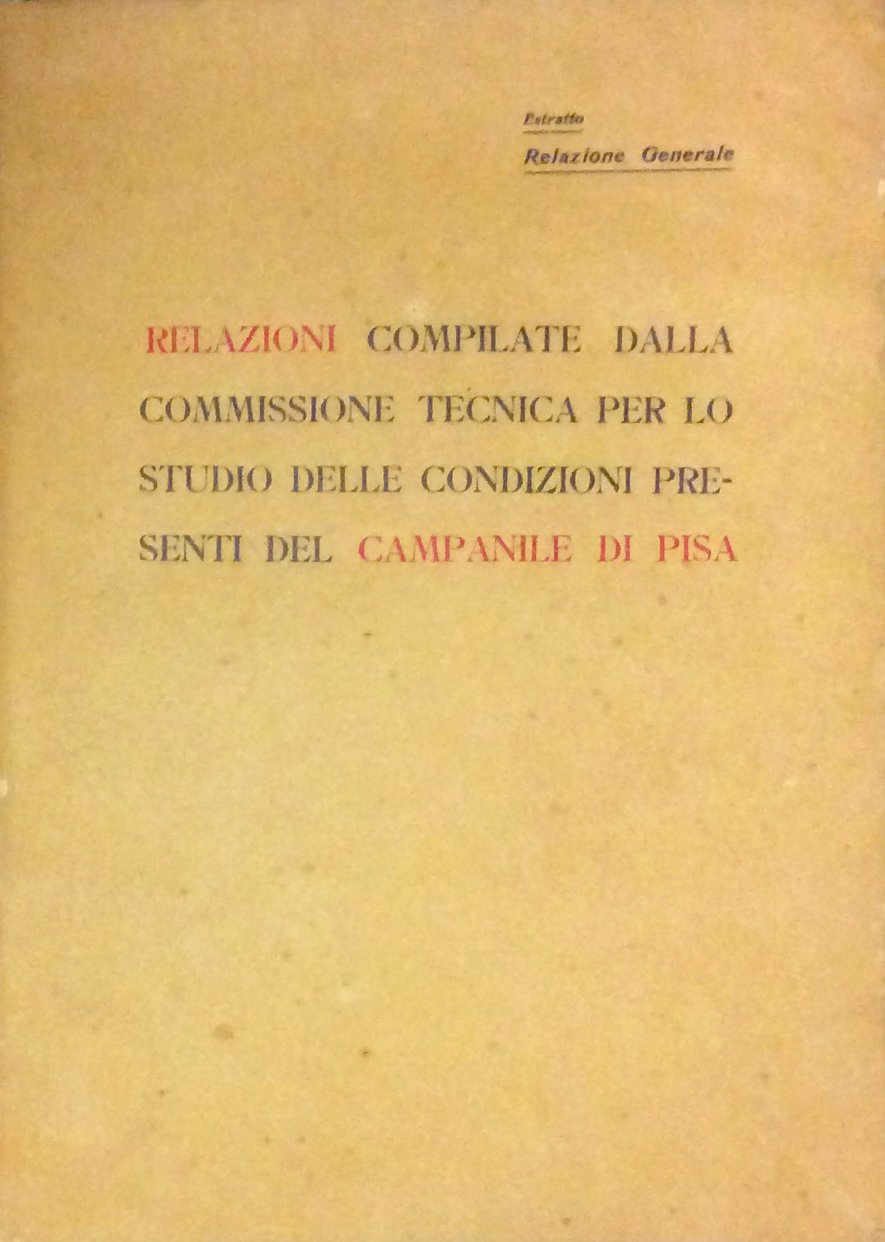 RELAZIONI COMPILATE DALLA COMMISSIONE TECNICA PER LO STUDIO DELLE CONDIZIONI PRESENTI DEL CAMPANILE DI PISA.