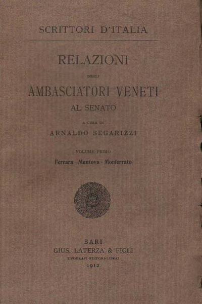 RELAZIONI DEGLI AMBASCIATORI VENETI AL SENATO. - Milano - Urbino. A cura di Arnaldo Segarizzi.