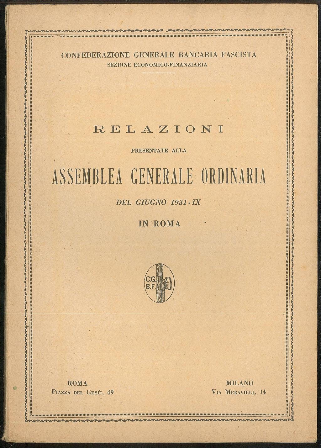 Relazioni presentate alla Assemblea Generale Ordinaria del giugno 1931, Roma