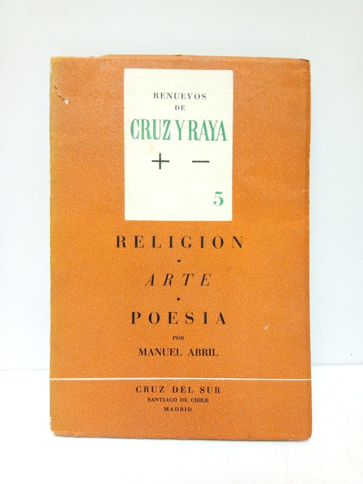Madrid y S. de Chile: [pero Imp. en Barcelona] Ed. Cruz del Sur, D.L. 1962.- 92 p.; 8º menor (16,2 x 11,2 cm); Cartulina Ed. con solapas.- (Renuevos de Cruz y Raya. 5).* LITERATURA Y FILOSOFÍA ESPAÑOLAS DE LOS SIGLOS XIX-XXI Y SU HISTORIA EN GENERAL