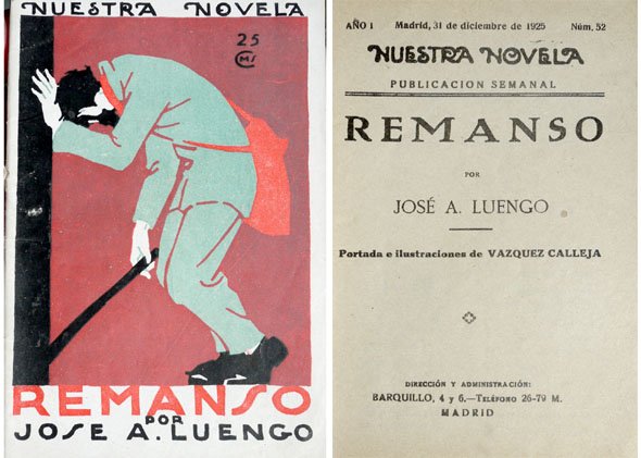 Madrid, Nuestra Novela, 1925. 8vo.; 57 pp., con ilustraciones de Vazquez Calleja. Cubiertas originales de Vazquez Calleja.