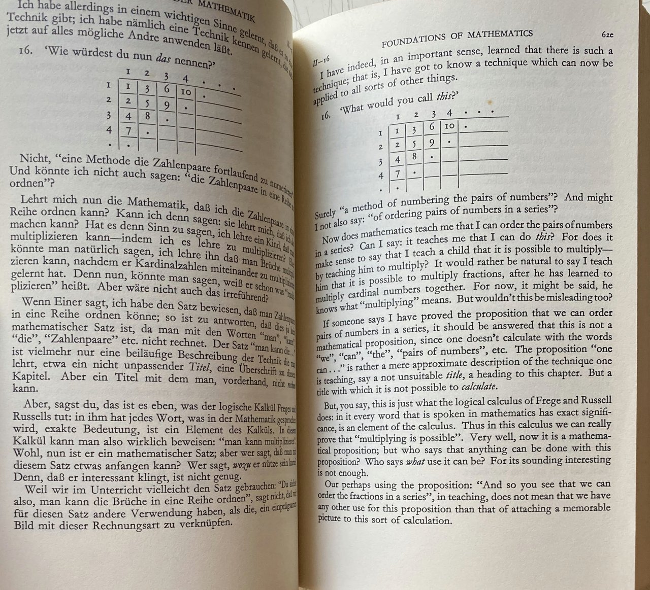 REMARKS ON THE FOUNDATIONS OF MATHEMATICS BY LUDWIG WITTGENSTEIN, BEMERKUNGEN ÜBER DIE GRUNDLAGEN DER MATHEMATIK von LUDWIG WITTGENSTEIN. (BILINGUAL VERSION ENGLISH-GERMAN, VERSIONE BILINGUE INGLESE-TEDESCO)