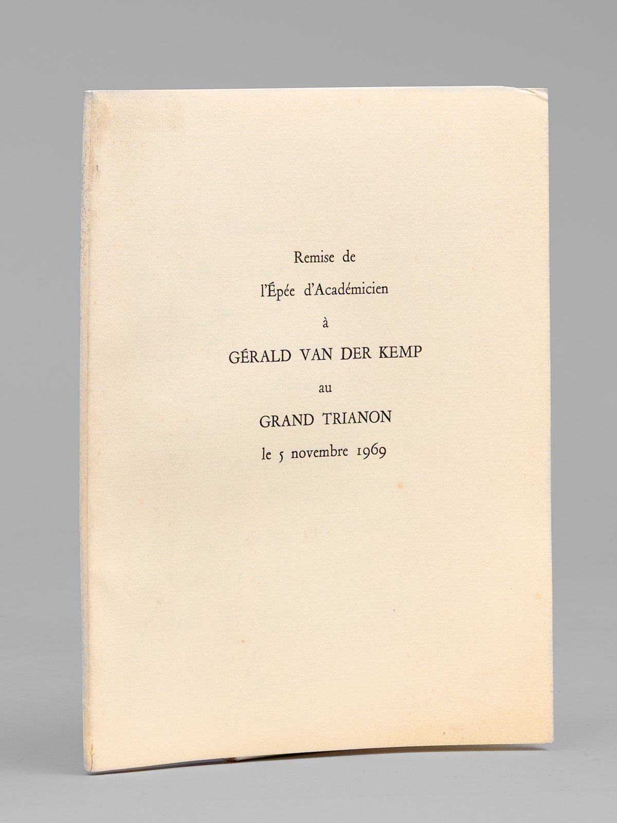 Remise de l'Epée d'Académicien à Gérald Van der Kemp au Grand Trianon le 5 novembre 1969 [ Livre dédicacé par Gérald Van der Kemp à Maurice Druon ]
