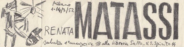 invito formato 33,5X9 cm circa alla mostra di Renata Matassi tenutasi alla Libreria Salto a Milano dall'1 al 14 marzo 1952; buon es.