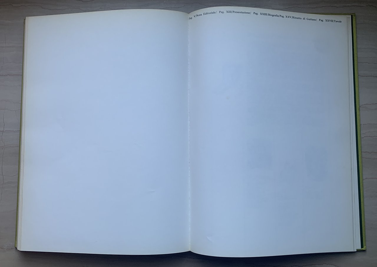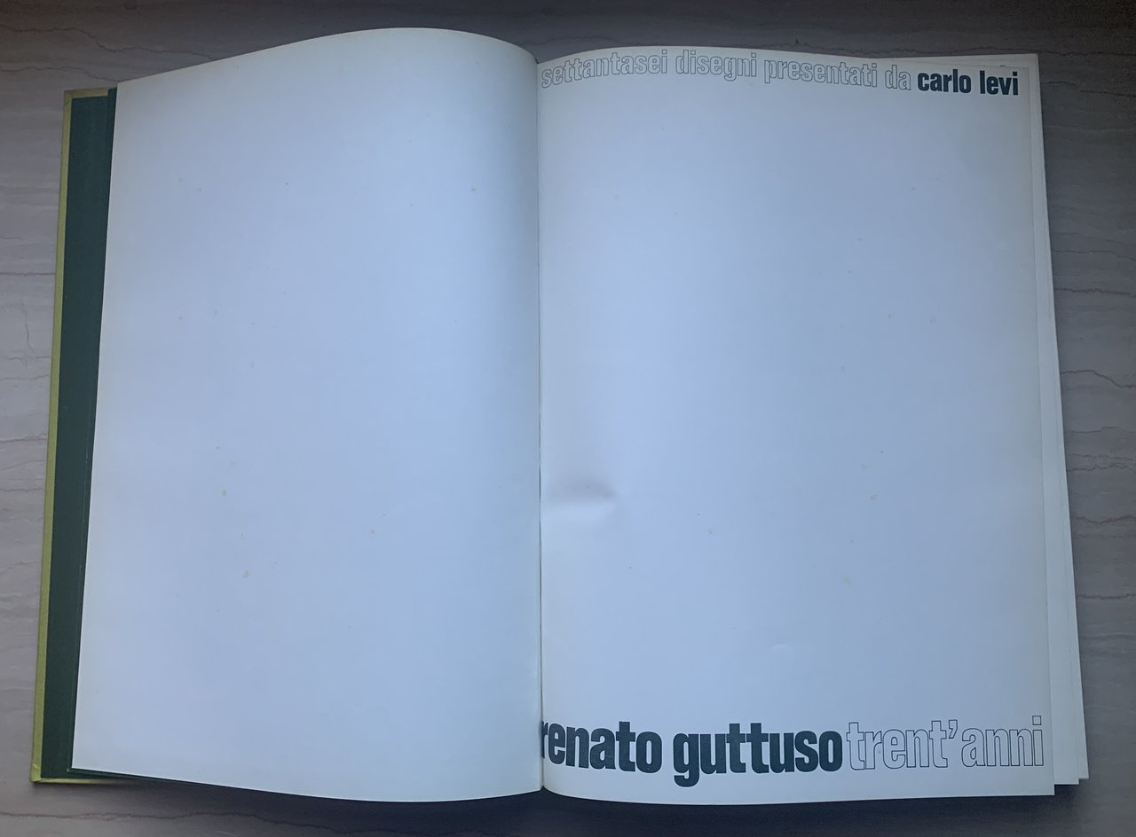 I ed. con turatura limitata: novembre 1969. Di questa edizione sono state stampate 40.000 copie, delle quali, 800 rilegate in mezza pelle e numerate da 1 a 800 e 200 rileate in pelle con una litografia originale firmata dall'Autore e numerate da I a CC: questa è una copia non numerata, rilegata in tela, senza litografia. IV/XXVIII+(76) tavole (quindi 152 pp.)+(20)=352/rilegatura rifinita in tela verde acido con titoli in verde foresta e bianco. Con 76 tavole f.t. con riproduzione delle opere nei colori originali (nero e colori) più una tavola f.t. con il particolare di una litografia in nero (Autoritratto di Renato Guttuso, 15 settembre 1945, part.). Al fondo del volume l'indice figurato in b/n delle tavole. Fogli di guardia in carta patinata verde foresta. Collaborazione grafica di G. C. Italiani. Selezioni eseguite dallo studio Cromolito di Turani Alfredo - Roma e di Nicola Moneta - Milano. Stato d'uso (copertina con gore brunite - pagine e tavole brunite e con qualche piccola fioritura).