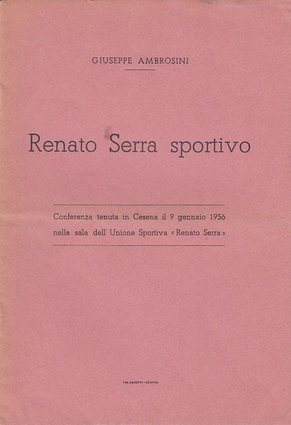 Renato Serra Sportivo. Conferenza tenuta in Cesena il 9 Gennaio 1956 nella sala dell'Unione Sportiva Renato Serra