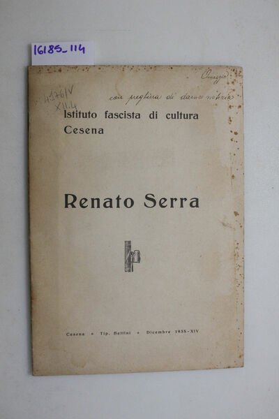 Opuscolo a cura dell'Istituto fascista di cultura Cesena - DETTAGLIO DELLE CONDIZIONI : La coperta presenta fioriture - (1.XII.4).