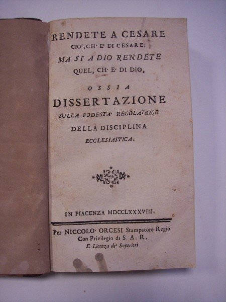 Rendete a Cesare ciò, ch'è di Cesare: ma sì a Dio rendete quel, ch'è di Dio, ossia Dissertazione sulla podestà regolatrice della disciplina ecclesiastica.