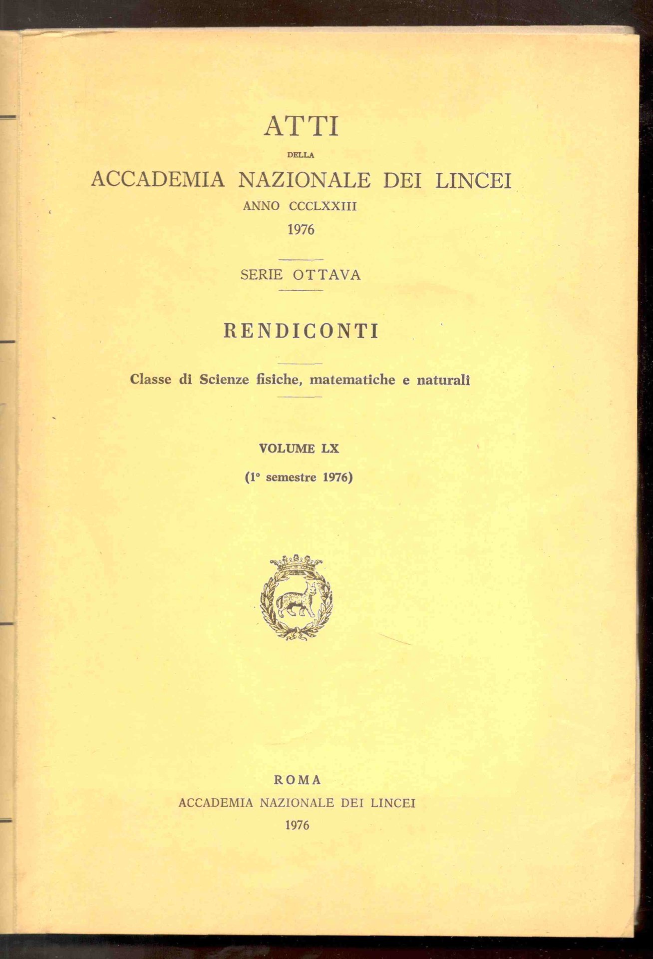 Rendiconti dell'Accademia Nazionale dei Lincei. Scienze fisiche e naturali. Serie ottava - Volume LX (1° semestre 1976)