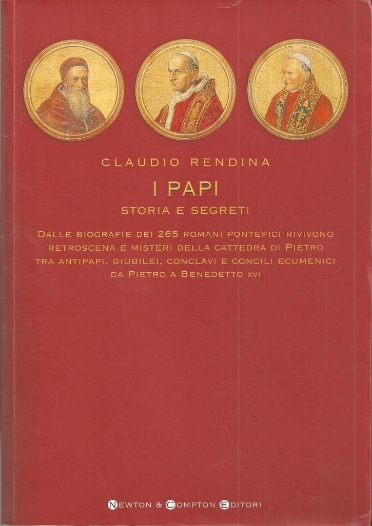 Claudio Rendina, I papi. Storia e segreti. Dalle biografie dei 265 romani pontefici rivivono retroscena e misteri della cattedra di Pietro tra antipapi, giubilei, conclavi e concili ecumenici, Newton Compton editori, Roma 2005, nona ed., pp. 864, ill. b.n., cm 22, br. ed. Collana I Big Newton. Saggi Storia, n. 16. Integrazione del sottotitolo alla prima di copertina: Da Pietro a Benedetto XVI. Leggere tracce d’uso, minima ingiallitura della carta, per il resto ben conservato.
