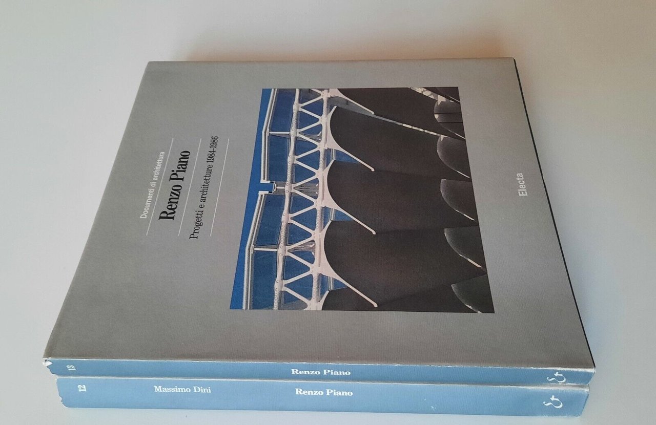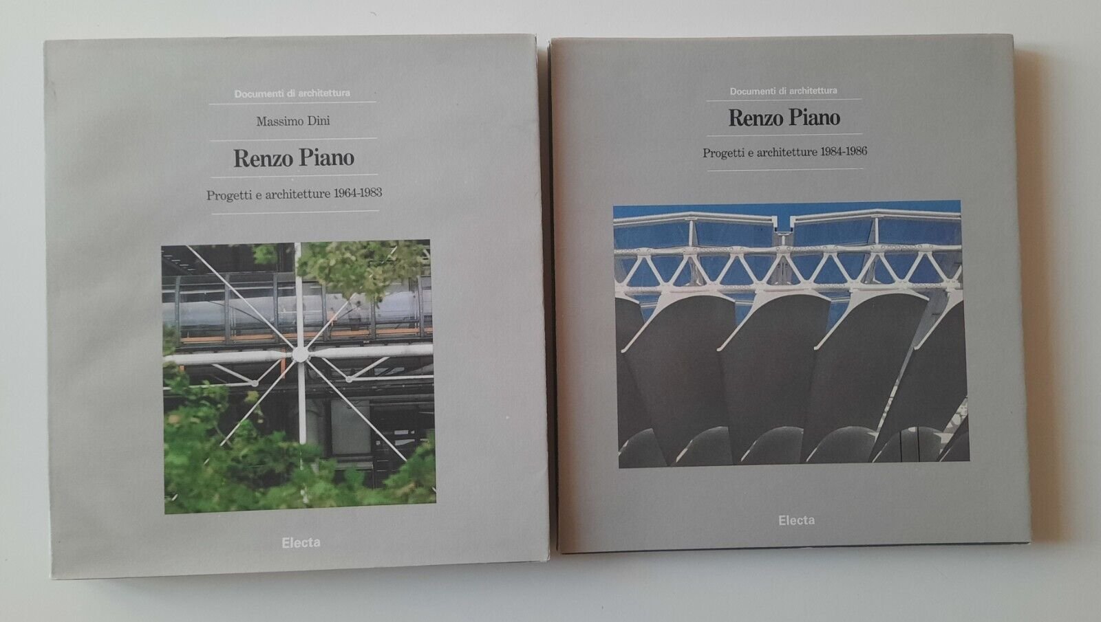 RENZO PIANO PROGETTI E ARCHITETTURE 1964-1983 / 1984-1986 ELECTACm. 22 x 24, 2 volumi, legatura editoriale, copertina illustrata, ill. a colori e in b/n.In ottime condizioni, lievissimi segni alla copertina.
