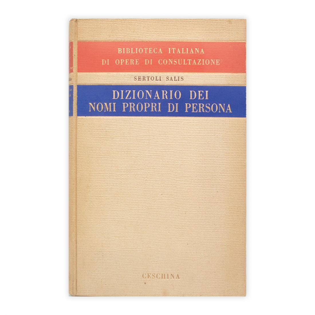 Autore: Renzo Sertoli Salis Titolo: Dizionario dei nomi propri di persona Edizione: Casa Editrice Ceschina - Milano 1951 Dimensioni: 17 x 23,5 cm c.a. Pagine: 253 Copertina: Cartonato Condizioni: Ottime come da foto