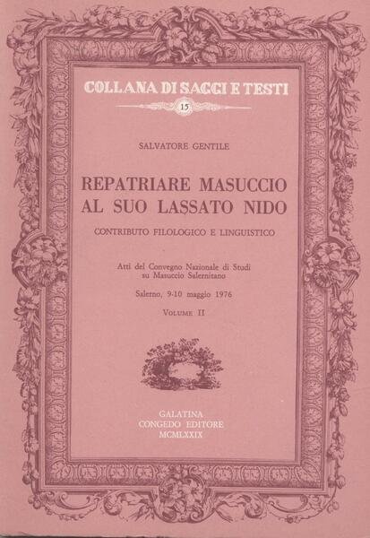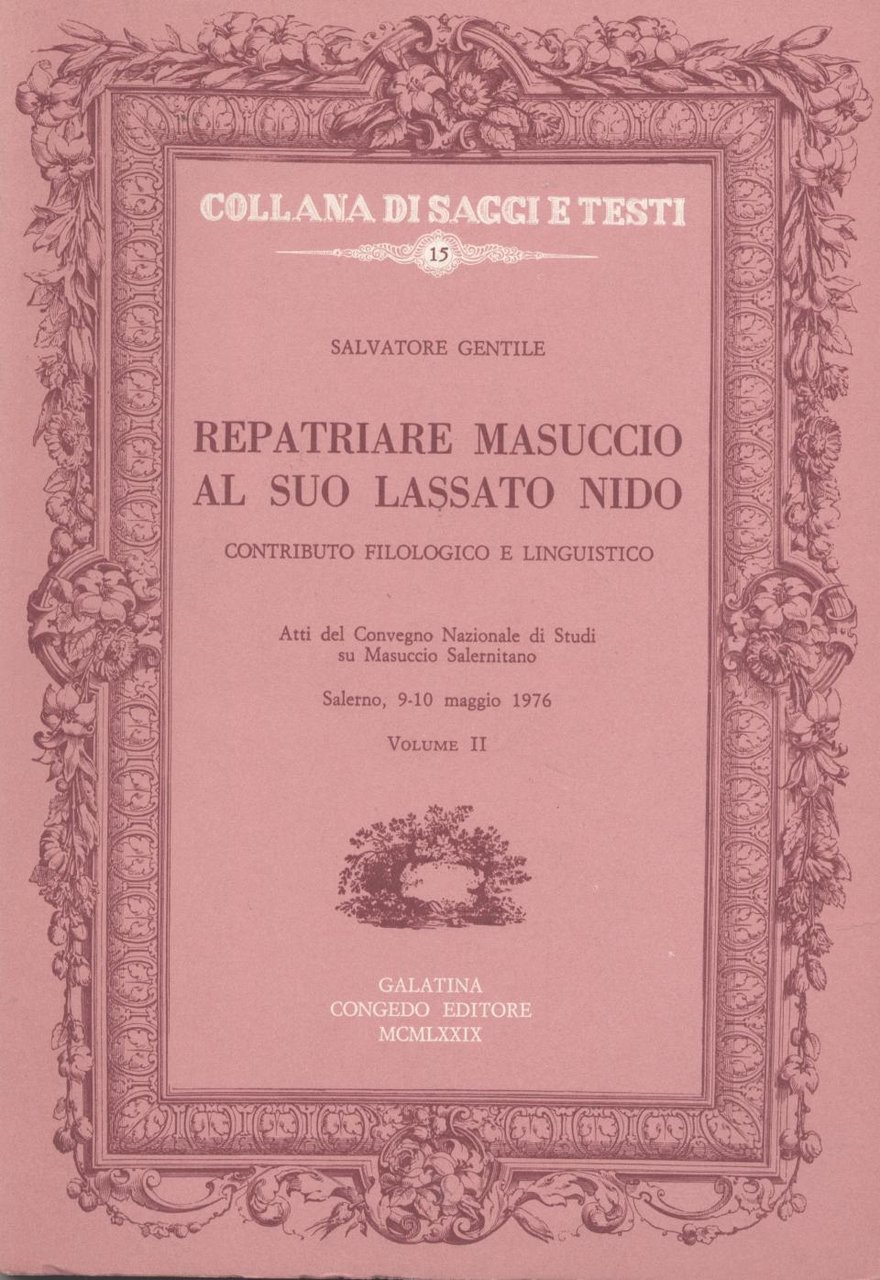 Repatriare Masuccio al suo lassato nido contributo filologico e linguistico Volume II