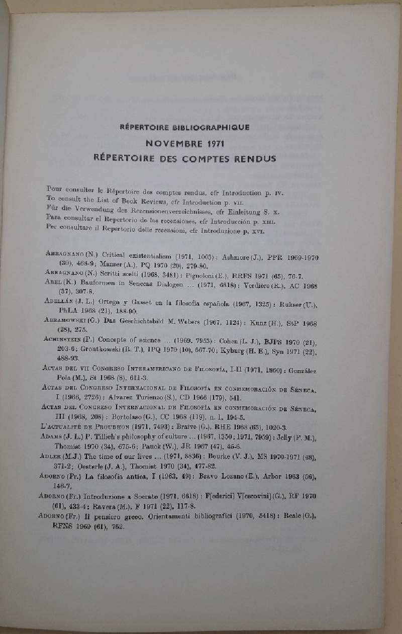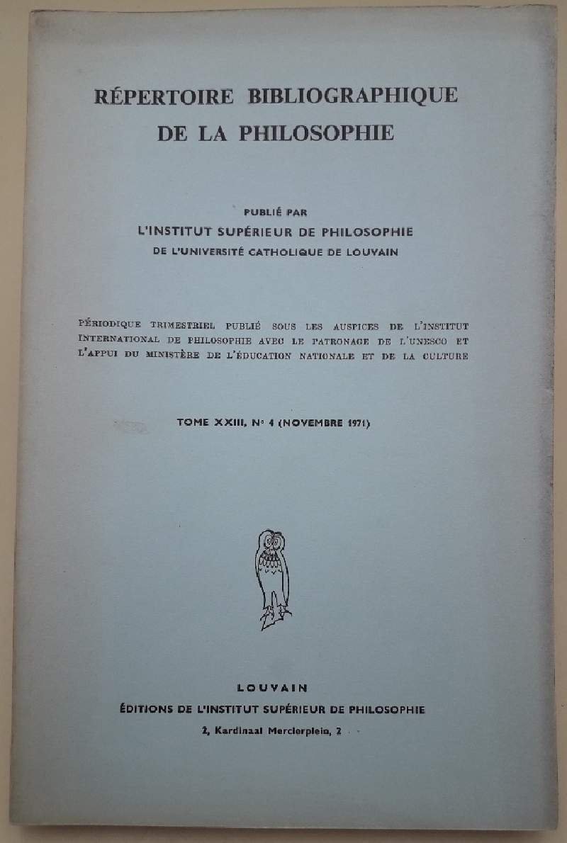 REPERTOIRE BIBLIOGRAPHIQUE DE LA PHILOSOPHIE- TOME XXIII, N. 4(NOVEMBRE 1971)