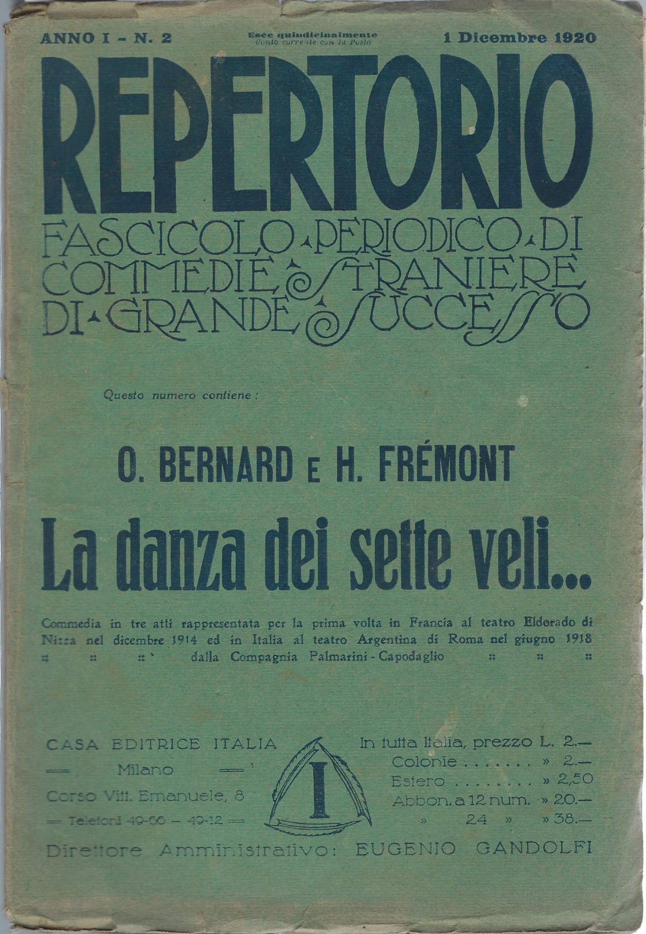 Repertorio Fascicolo Periodico di Commedie straniere di grande successo N ° 2 - "La danza dei sette veli..." commedia in 3 atti. OBernard e H. Frémont -