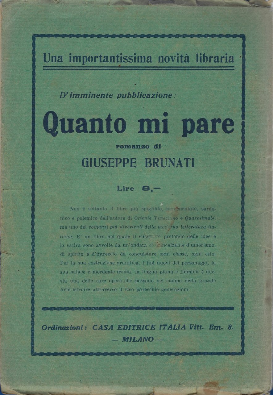 Brossura editoriale con titoli in cornice al piatto anteriore.