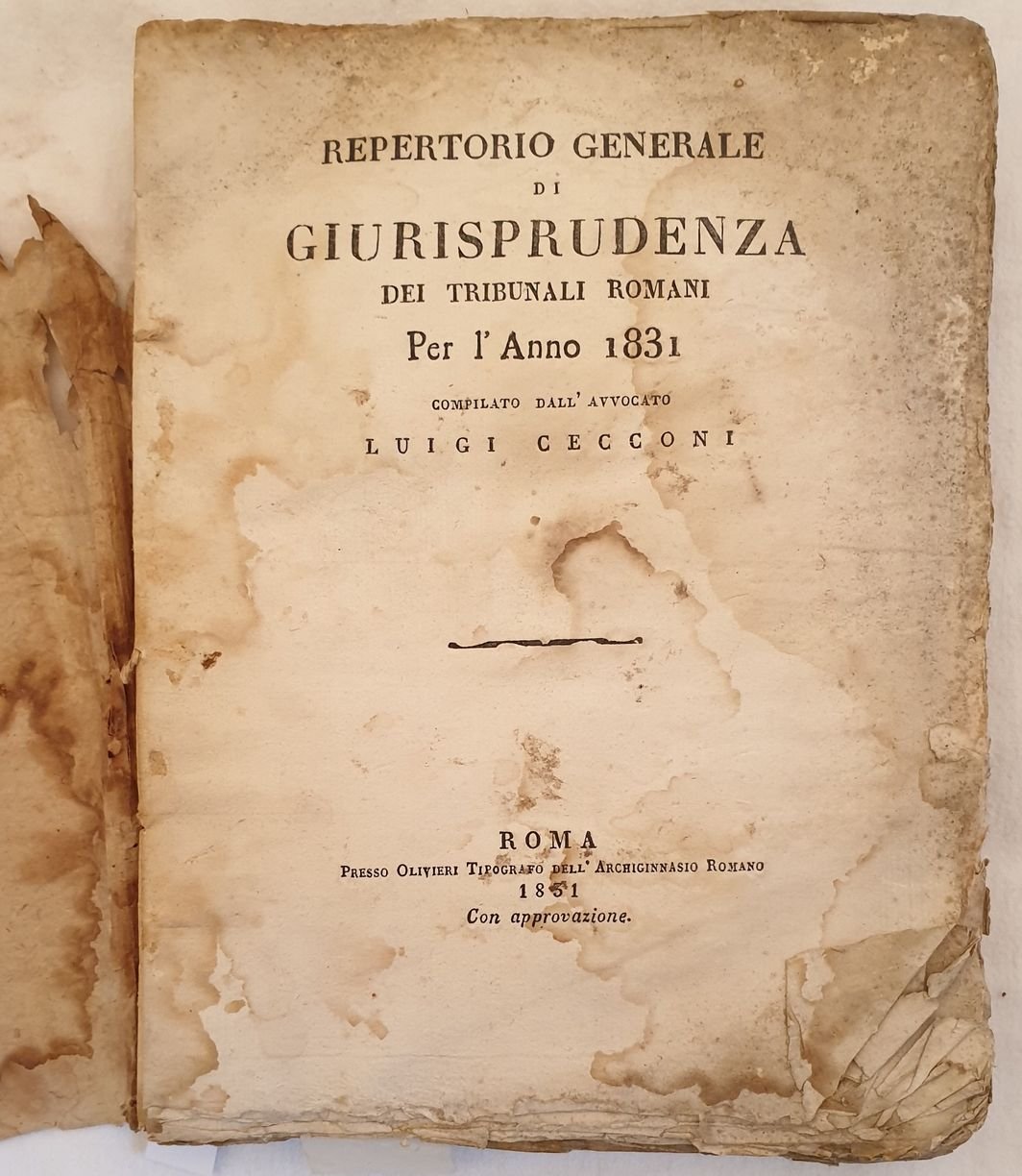 REPERTORIO GENERALE DI GIURISPRUDENZA DEI TRIBUNALI ROMANI PER L'ANNO 1831