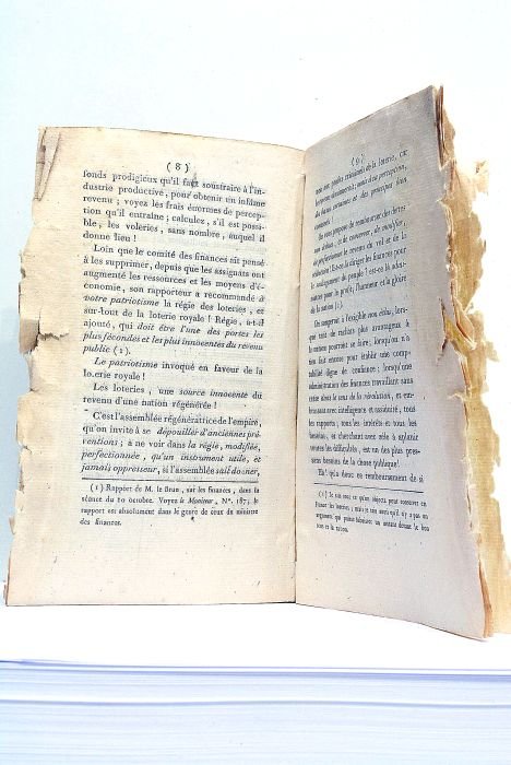 in-8. 15pp. Broché. Cette brochure, rédigée par Étienne Clavière en réponse à un député de l'Assemblée Nationale en 1790, s'inscrit dans le contexte révolutionnaire français, période marquée par d'importants bouleversements économiques et financiers. Clavière, banquier genevois et figure politique de l'époque, y défend l'émission des assignats, nouvelle monnaie destinée à stabiliser la finance publique en s'appuyant sur les biens nationaux. Papier abîmé par l'humidité dans la marge de tous les feuillets (avec petites déchirures sans manque). Exemplaire modeste.