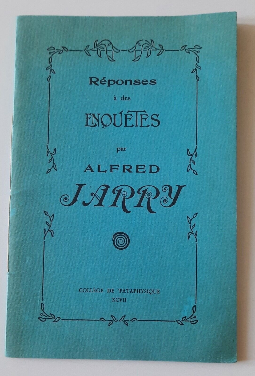 REPONSES A DES ENQUETES PAR ALFRED JARRY COLLEGE DE PATAPHYSIQUE In 8°, pag. 31, legatura editoriale, copertina illustrata.In ottime condizioni.