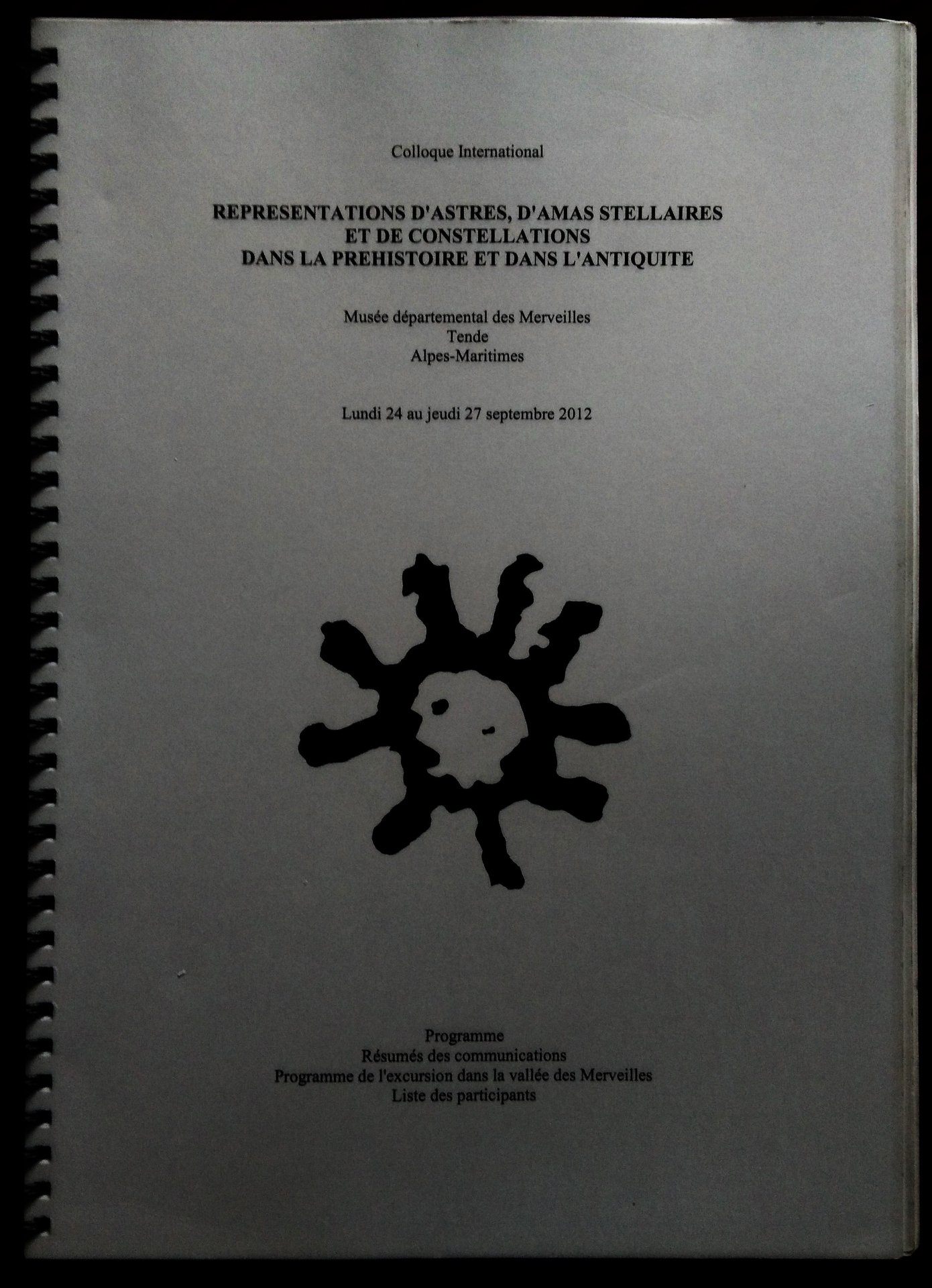 Representations d'Astres, d'Amas Stellaires et de Constellations dans la Prehistoire et dans l'Antiquite. Musée departemental des Merveilles Tende. Lundi 24 au jeudi 27 septembre 2012.