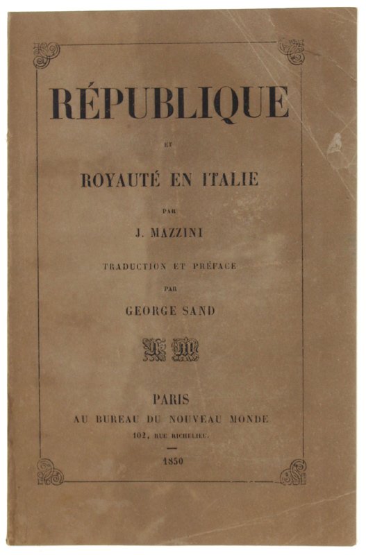 REPUBLIQUE ET ROYAUTE' EN ITALIE. Traduction et préface par GEORGE SAND. Aperçus historiques et documents rélatifs à l'insurrection lombarde et à la guerre royale de 1848.