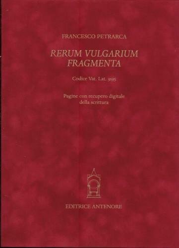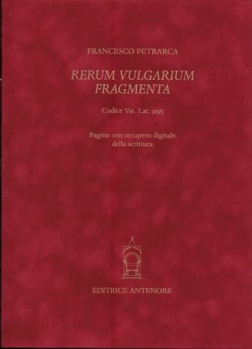 ediz. integrale in facsimile del codice autografo del Canzoniere posseduto dalla Biblioteca Apostolica Vaticana, in tiratura limitata a 624 copie (ns. copia n° 52) in custodia di plexiglass; in 4°, Kg 4,500; pp. 156 (cc. II-II-72-II), leg. edit. p/velluto rosso su assi in legno, ds. a nervi, sguardie in seta moiré rossa, tagli dorati. Cartella a 3 lembi in cartoncino vellutato rosso con tit. in oro contenente un fascicolo di 8 pp. con la presentaz. dell'opera per Furio Brugnolo, e 18 tavv. a colori sciolte di Pagine con recupero digitale della scrittura. Commentario (del 2004) a cura di G. Belloni, F. Brugnolo, H. Wayne Storey e S. Zamponi, in 4°, pp. 404, p/tela edit. rosso veneziano con tit. in oro al ds. e al piatto. La storia, il commento e le caratteristiche codicologiche e paleografiche del primo grande autografo della letteratura italiana giunto sino a noi, con la trascrizione del testo di Petrarca in edizione diplomatico-interpretativa, che è l'edizione di riferimento del capolavoro petrarchesco. Nuovo e perfetto. 004/30